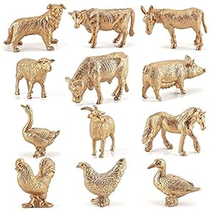 Gold Bauernhof-Tier-Charaktere,12 Stücke Gold Safari Tiere Figuren Spielzeug,Kunststoff Similation Wilde Tiere Figuren…
