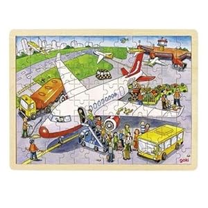 Goki 57544 57544-Einlegepuzzle-Auf dem Flughafen, Mehrfarbig