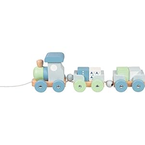 goki 55876 – Traktor mit Anhänger aus Holz, Robustes Fahrzeug mit beweglichen Reifen, flexibler Anhänger und Heuballen, leicht zu greifen, fördert die Motorik der Kinder, 21cm x 6cm x 11cm, ab 2 Jahre