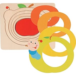 goki 57403 Puzzle aus Holz, 5 Schichten, Motiv Wurm im Apfel, Mehrfarbig, 12,3 x 10,5 x 1,8 cm