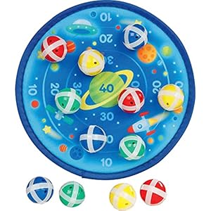 goki 56653 Klett-Dartscheibe Weltall Ø= 25 cm, Stoff, Kunststoff, 12 Klettbälle, bunt