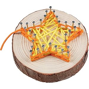 Fadenbild mit Nägeln: Ø 7 cm, Holz, 1 Baumscheibe, 7 Fäden, 35 Nägel, 2 Vorlagen
