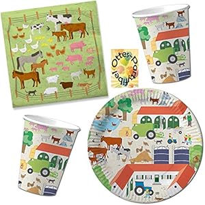 HHO Bauernhof Traktor Party-Set 36tlg. für 8 Gäste : Teller Becher Servietten
