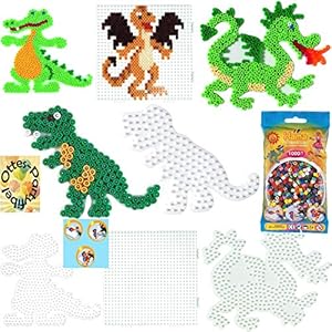 HAMA Bügelperlen-Bastel-Set midi-Stift-Platten-Set midi Krokodil + Drache+ Dinosaurier + großes Quadrat + Bügelperlen…