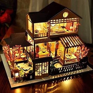 Puppenhaus Miniatur mit Möbeln, DIY Miniatur Puppenhaus Holzmöbel Kit handmontierte Puppenhaus Haus mit LED-Leuchten…