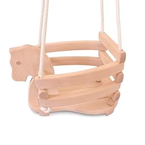 2-in-1 Kinder-Schaukel als Pferd 7012 – Massivholz – Baby-Schaukeltier mit Seil – Natur – Umbau als Kinderschaukel