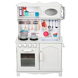 Kinderplay Große Kinderküche, Spielküche Holz für Kinder – Zwei Höhenstufen 89 cm und 103 cm, LED-Beleuchtung, Zubehör…