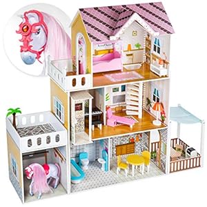 Kinderplay Puppenhaus Holz Gross, Puppenvilla, Puppenhaus Holz Groß komplett – Barbie Traumvilla, Barbie Puppenhaus, Led…