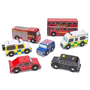 Le Toy Van – Kultiges Spielset mit Holzautos im London-Design – 7-teiliges Set | Fahrzeug-Rollenspiel für Jungen – Geeignet für Kinder ab 3 Jahren