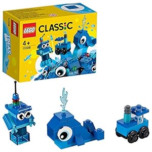 LEGO 11006 Classic Blaues Kreativ-Set, kreatives Spielzeug ab 4 Jahren mit Spielzeug-Wal, Zug, Roboter, Geschenk für Kinder Steine-Box mit Bausteinen