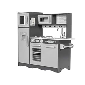 Mamabrum, Babyspielzeug Spielküche mit LED-Blitzsystem, Kinderspielzeug aus Holz, Rollenspielküchenzubehör inklusive Rollenspielküche für Kinder, Kleines Küchenchef-Spielset, Naturholz/Grau
