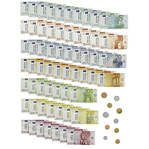 MIJOMA 71-teiliges Spielgeld Rechengeld für Kinder-Kaufladen, für Spielzeug Kasse Kaufmannsladen-Zubehör Rollenspiel