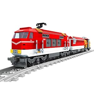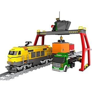 Bausteine Zug, Güterzug Bauset mit Wagons, Schienen,Container LKW, 1008 Klemmbausteine