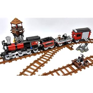 Modbrix Bausteine Wild West Eisenbahn Zug mit 3 Waggons,Schienen und Draisine