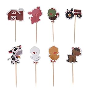NUOBESTY 72 Stücke Bauernhoftiere Kuchen Topper Cupcake Picks Bauernhof Traktor Tortenstecker Zahnstocher Kuchendeko für Baby Kindergeburtstag Party Deko