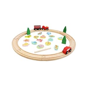 NUOBESTY 32 TLG Holzeisenbahn Holz Eisenbahn Zugset Holz Bahnset Schienenbahn Kleinkinderspielzeug Bausteine Kinder-Bahn…