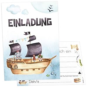 Olgs Piratenschiff Kindergeburtstag, Einladungskarten 12er-Pack mit Umschlägen, Einladungen Ausfüllbar