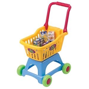 PlayGo 3245 – My Shopping Cart, zusammenklappbarer Einkaufswagen für den Kaufladen, mit Inhalt