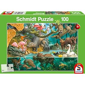 Schmidt Spiele Puzzle 56306 Tierfamilien am Ufer 100 Teile Kinderpuzzle, bunt