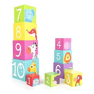 small foot 11205 Stapelwürfel Wildtiere aus Stabiler, Leichter Pappe, Lernspielzeug Spielzeug, Mehrfarbig