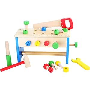 small foot 10052 Werkzeugkasten und Werkbank 2 in 1 aus buntem Holz, fördert motorische Fähigkeiten, ab 3 Jahren