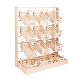 Small Foot Verkaufsstand aus Holz, großer Stand mit zwölf leeren Kisten, stabile Ausführung, ab 3 Jahren, 7035 Spielzeug, Large