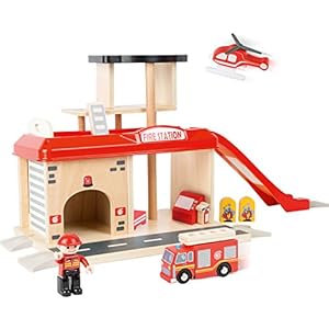 Small Foot Feuerwache mit Feuerwehrauto, Feuerwehrmann und Hubschrauber, ab 3 Jahren, 10900 Eisenbahnzubehör, Mehrfarbig