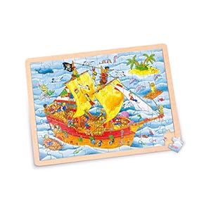small foot 57831 Einlegepuzzle Piraten aus Holz, Holzpuzzle mit Schiff und Seeleuten, Lernspielzeug und Kinderpuzzle, fördert Fantasie und Motorik der Kinder, 40cm x 30cm, 96er Set, ab 3 Jahre