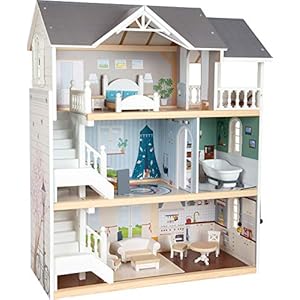 Small Foot Puppenhaus Stadtvilla, aus Holz, mit 3 Etagen, offener Front und umfangreichem Mobiliar, ab 3 Jahren, 11802…