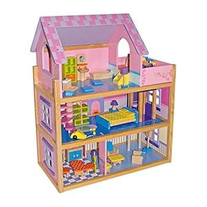 small foot 1535 Puppenhaus „Rosa“ aus Holz, mit 3 Etagen, Wendeltreppe, Fahrstuhl und 23 Puppenmöbeln, ab 3 Jahren