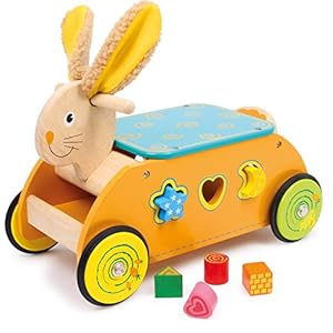 small foot 1573 Rutscher Steckspiel aus Holz, Motorikspielzeug für Babys, ab 12 Monate Motorikwagen Hase