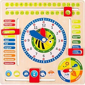 small foot Lerntafel aus Holz, zum Lernen von Datum, Uhrzeit, Jahreszeiten und Wetter, ab 3 Jahren, 4765