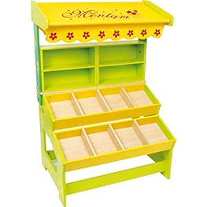 small foot 1553 Verkaufsstand „Max“ aus bunt lackiertem Holz, für allerlei Obst-und Gemüsewaren, Spielspaß ab 3 Jahren Toys, gelb, NS