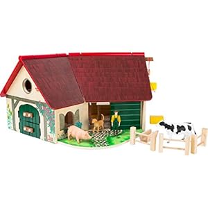 Small Foot 8555 Holzscheune Alabama, roter Holzstall mit abnehmbaren Dach, Bauernhof-Zubehör