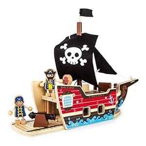 Small Foot 2019701 Bausatz-Piratenschiff aus Holz, mit Zwischendeck für die Gefangenen, Totenkopf-Segel, Kanone
