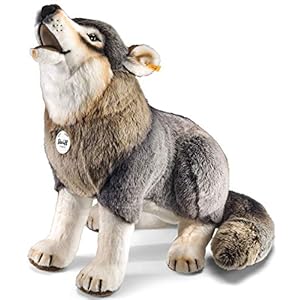 Steiff Snorry Wolf hellgrau sitzend 60 cm, Kuscheltier Wolf, Plüschtier aus streichelweichem Webpelz, ideal zum Kuscheln und zum Spielen, Stofftier für Mädchen und Jungen