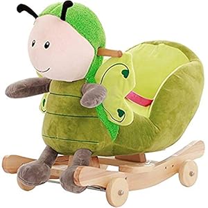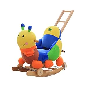 Schaukelpferd Baby Schaukelpferd aus Holz, 2 in 1 Plüsch Schaukelpferd mit Rädern, farbige Caterpillar Baby Rocker for 1…