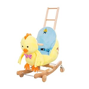 Schaukelpferd Baby Schaukelpferd aus Holz, 2 in 1 Plüsch Schaukelpferd mit Rädern, gelbes Huhn Baby Schaukel for 1-3…