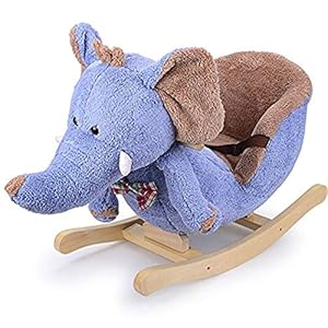 Schaukelpferd Kinder Schaukelstuhl Baby Holz Schaukelstuhl Mit Musik Trojan , 2 In 1 Grauer Elefant Plüsch Schaukelpferd…