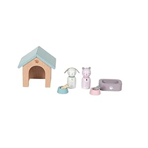 Little Dutch 4475 Holz Puppenhaus Zusatz Spielset 8-teilig – Haustiere Hund und Katze