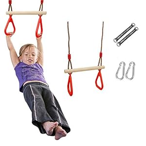 Ulikey Kinder Holz Trapeze Schaukel mit Ringen Kunststoff, Multifunktions Kinderholz Trapez, Schaukel Outdoor Kinder, Kinderschaukel Turnringe Belastbar bis 120kg für Garten Indoor Outdoor (Rot)