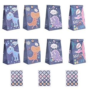 Ulikey 32Stk Dinosaurier Papiertüten, Dino Geschenktüten zum Befüllen mit 32 Aufkleber, Dino Tüten Papier Geschenk Candy…