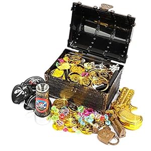 Ulikey Piraten Schatzkiste Goldmünzen Edelstein Piratenschatz Set, Piraten Schatztruhe, Piratenschatzkiste für…
