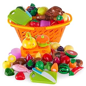 Ulikey 21 Stück Küchenspielzeug Schneiden Obst, Küchenspielzeug für Kinderküche – Lebensmittel Spielzeug Set mit Korb…