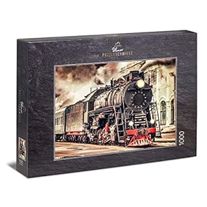 Ulmer Puzzleschmiede – Puzzle „Railroad“– Klassisches 1000 Teile Puzzle – Eisenbahn-Motiv Einer historischen Dampflokomotive – Zug bei der Einfahrt in den Bahnhof