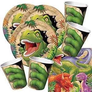 Unbekannt 48-teiliges Party-Set Dinosaurier – Dino – Alarm – Teller Becher Servietten für 16 Kinder