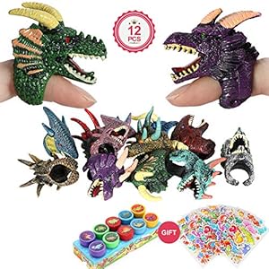 Vamei 34 Stücke Dinosaurier Party Mitgebsel mit Dinosaurier Fingerpuppen Dinosaurier Aufkleber Stempel Dino Ringe…