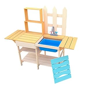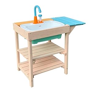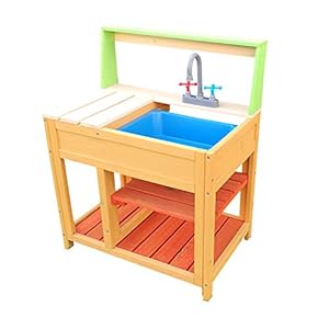 Matschküche für Kinder aus Holz mit Spülbecken, Spielküche für Garten, Terrasse und Balkon