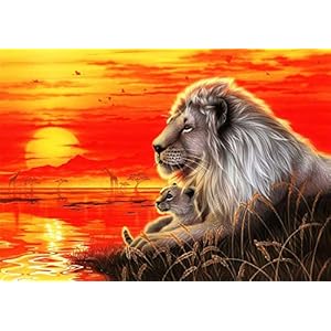 WOWDECOR DIY Malen nach Zahlen für Erwachsene Kinder Mädchen, König der Löwen Sonnenuntergang Meer 40x50cm Vorgedruckt…