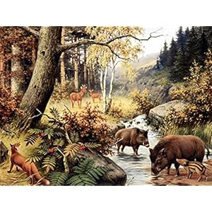 Wowdecor DIY Malen nach Zahlen Kits Geschenk für Erwachsene Kinder, Malen nach Zahlen Home Haus Dekor – Pig Hirsch Fuchs Wald Baum Fluss Landschaft 40 x 50 cm ohne Rahmen